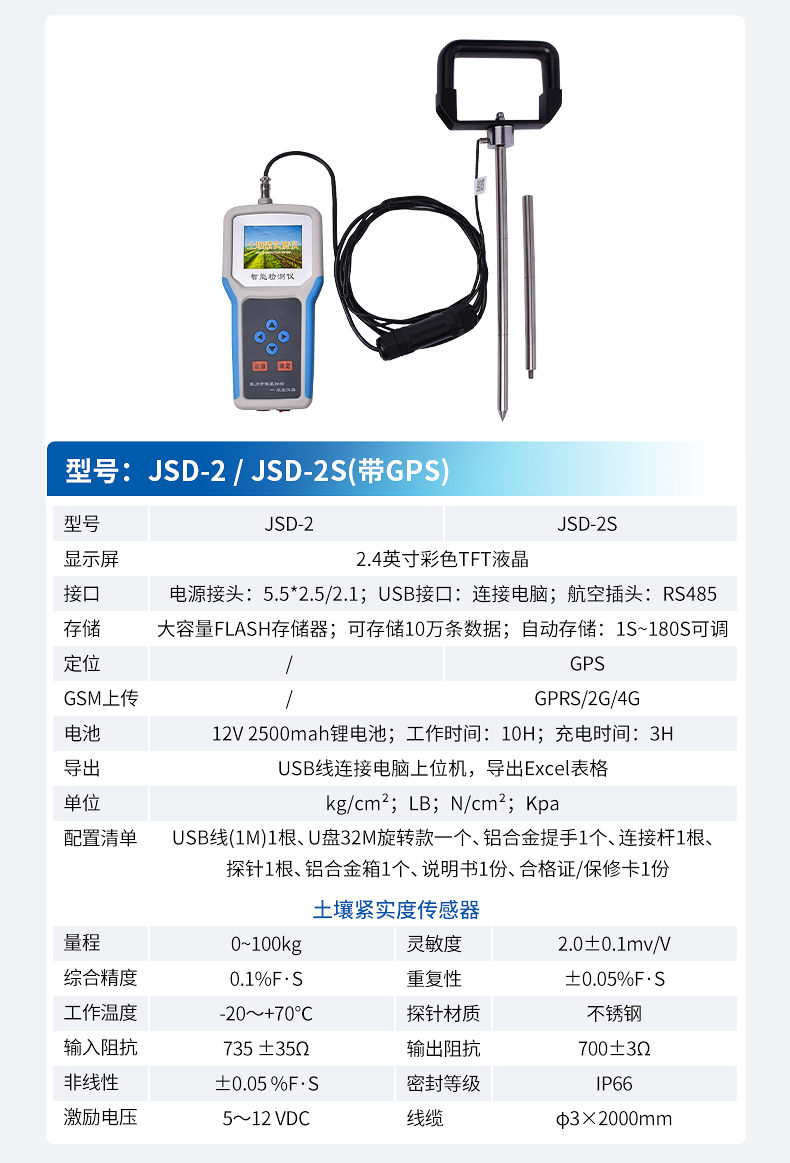 土壤緊實度由土壤抗剪力、壓縮力和摩擦力等構成。是土壤強度的一個合成指標。金屬柱塞或探針壓入土壤時分動載和靜載兩種方法,不同方法的測定值不同,但有聯系。柱塞的形狀有錐體、平頭、圓球及楔子等,這些對測定值也有影響。對同一種方法的測定值,主要決定于土壤質地、容重和含水量。其中含水量的影響最大。土壤緊實度可預測土壤承載量、耕性和根系伸展的阻力。土壤緊實度的大小可影響作物根系的穿孔和生長,是一個重要的土壤物理特性指標,用于評價土壤耕性。緊實的土壤可阻止水分的入滲,降低化肥的利用率,影響植物根系生長,導致作物減產。