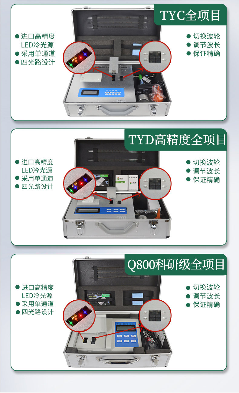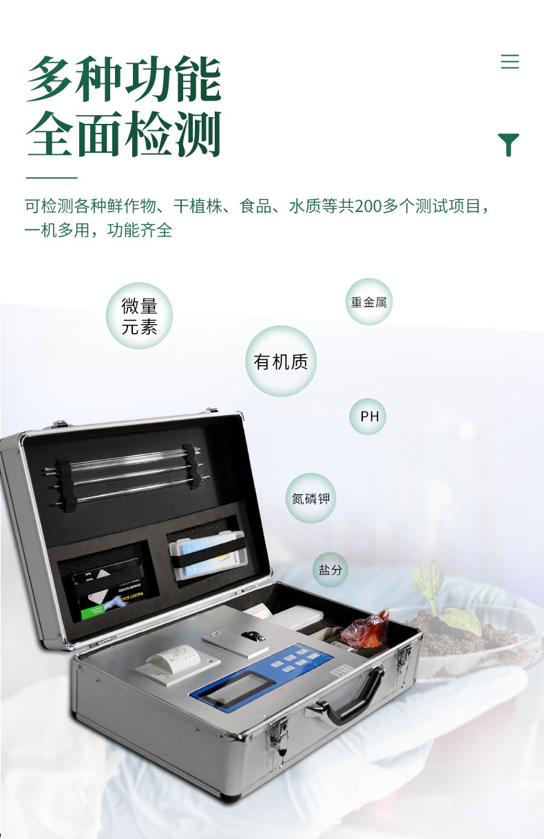科研級(jí)土壤肥料養(yǎng)分檢測(cè)儀功能全:測(cè)試項(xiàng)目國(guó)內(nèi)外全面(各類藥劑均可選購)。